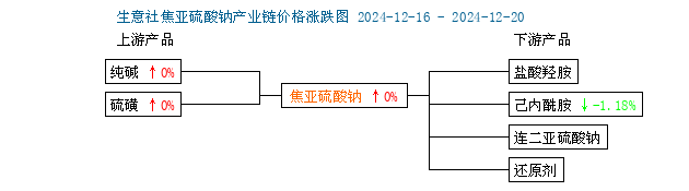 本周國內(nèi)工業(yè)級焦亞硫酸鈉市場價格暫穩(wěn),焦亞硫酸鈉上游純堿和硫磺價格本周價格暫穩(wěn),下游己內(nèi)酰胺價格下跌0.59%,下游市場成交冷清對焦亞硫酸鈉市場影響有限,焦亞硫酸鈉廠家報價維持穩(wěn)定。(以上價格均指國內(nèi)主流企業(yè)對外報價,部分未報企業(yè)暫不在其范圍內(nèi),價格僅供參考,與廠家最終定價無關,詳情請聯(lián)系各廠家咨詢)。